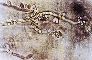 肺の組織、鼻洞 | 気管支肺炎または肺膿症の症状、慢性では気管支または肺に球菌を形成する。 肺アスペルギルス症、外耳道アスペルギルス症。 |